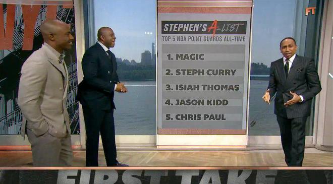 雷速体育6月13日讯 今日,ESPN名嘴斯蒂芬·A·史密斯在节目中当着魔术师本人排心中的历史前五控卫。